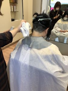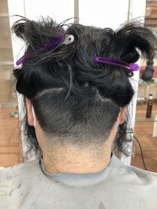えりあしの生え癖が強いので、中を刈り上げています。