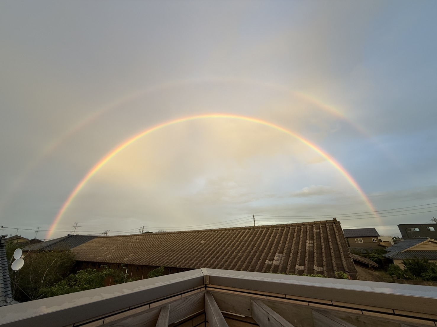 昨日の夕方雨上がりにWレインボーをみました。