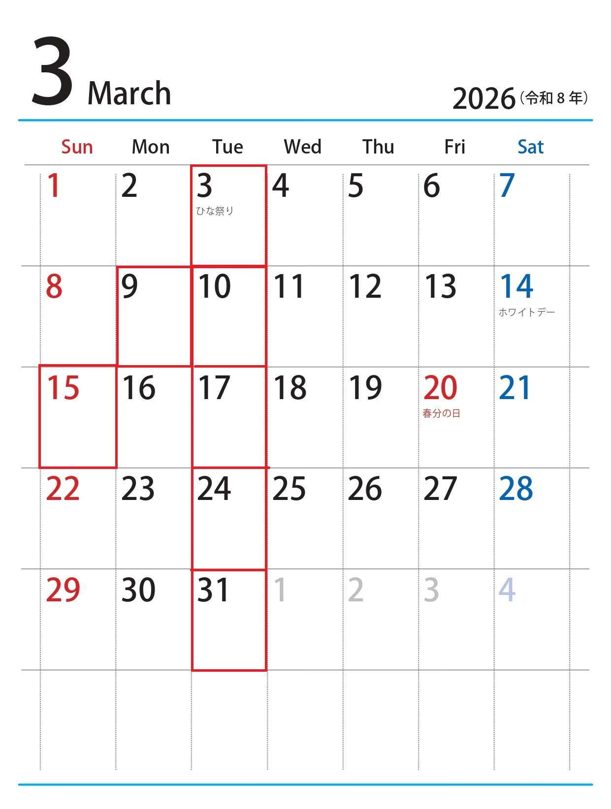 3月は毎週火曜日、第二月曜日、第三日曜日は定休日でございます。